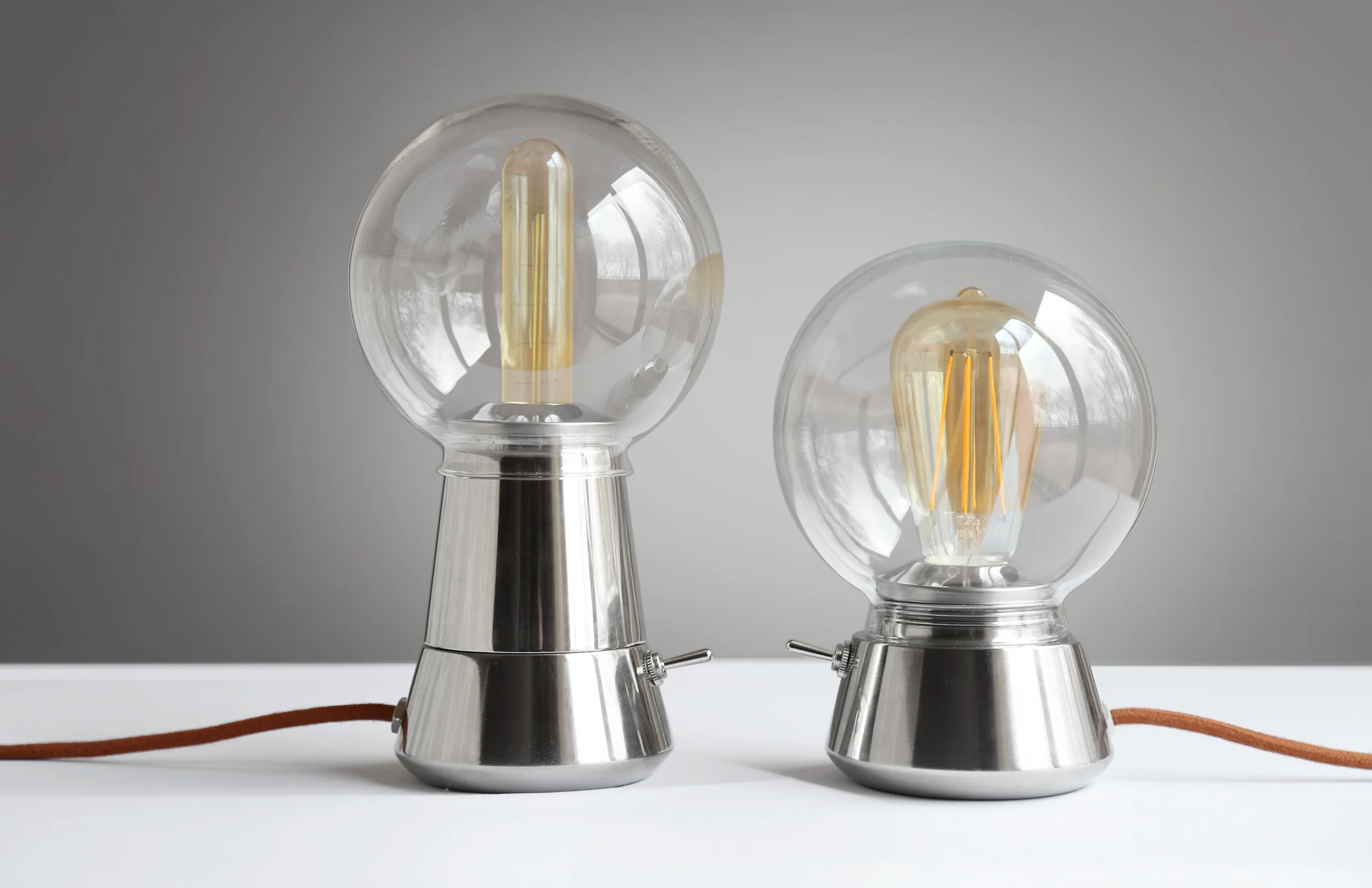 The Pezzetti lamp was a quick weekend project initiated by the thoughts of creating something from off the shelf objects. The base of the lamp made use of Pezzetti expresso coffee maker found in store and lamp shade was from a local construction material reuse place. The vintage LED light bulb, mechanical rocker switch, and linen wrapped electric cords were used to add retro and industrial look to this pair of lamps.