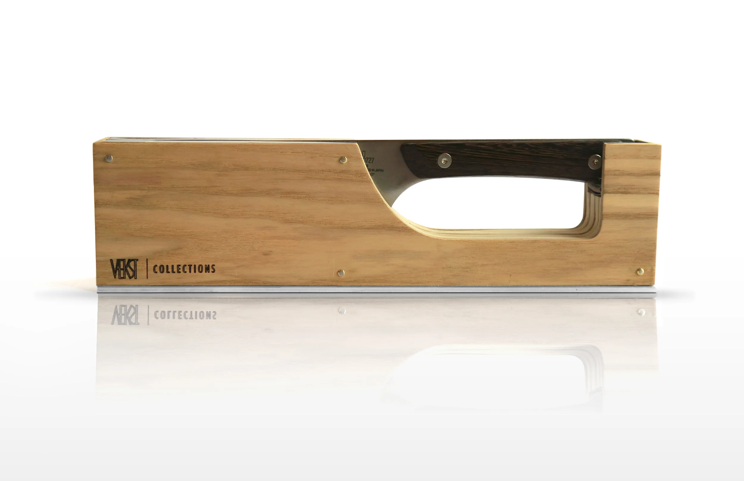 It was a fun project to create this  single knife stand using Ash and Balsa wood. It works with the Japanese Shun Kanso Santoku 6.5" Knife and the set was packaged and presented as a Christmas gift for a friend.