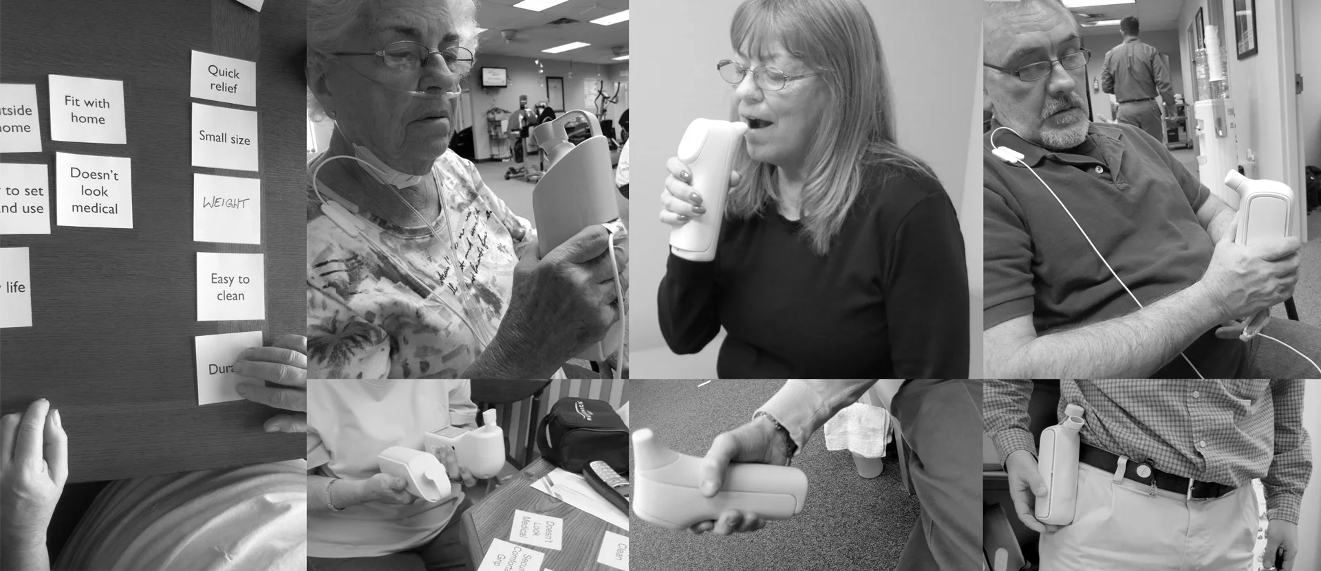 The design challenge in this project is to bring this product from research to market in a relatively quick time frame, while ensuring the core needs of the COPD patients are met. We started our involvement with going to COPD patients' homes to build empathy with our users