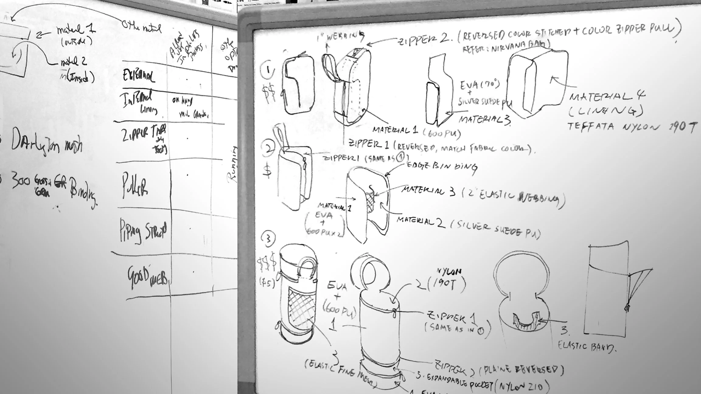 To leverage the expertise of our vendor and communicate ideas efficiently, I lead a 2 days workshop at vendors office with our marketing and sourcing lead, where we discussed initial concepts and their fit of our product requirements, technical constraints and cost. We framed out 4 concept directions and prototyped them at vendor's sewing lab.